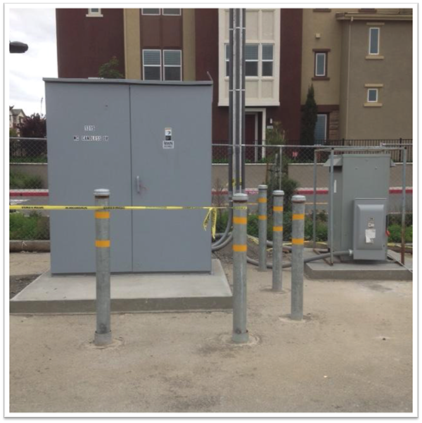 This $80k temp power job required an 800a, 208v electrical panel that provided 200a of power for a trailer compound and then the remaining 600a for production power. The source was an underground PG&E Primary Volt 12kv line. We had to dig down to the line and lay 4" conduit so that PG&E could run over to a pre-cast pad we had set for a PG&E 3 phase, 208v temporary transformer. We set our 800a panel next to the PG&E transformer. Given that the actual construction site was 800' away, not counting the further distance within the apartments being built, we had to step the power up to 480v to avoid voltage drop, run it over to the site, and step it back down to 208v using four 75kva temp transformers, each with their own precast pad. Helix took it from there.
